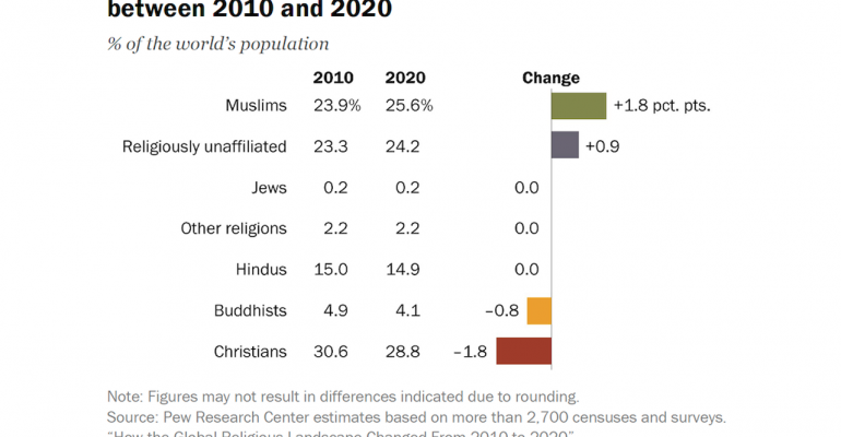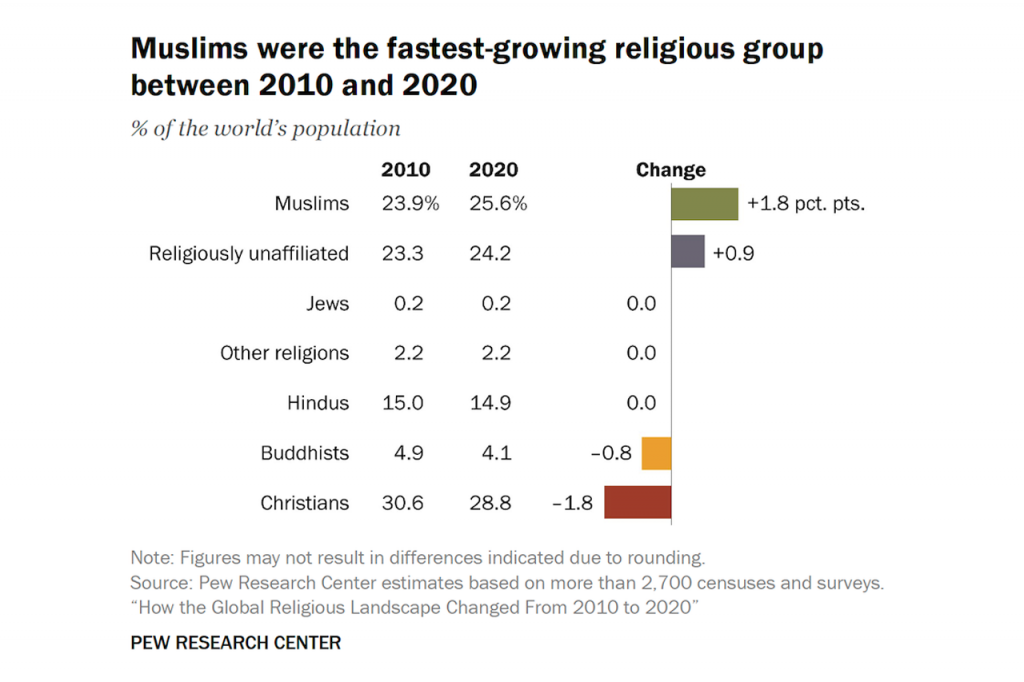 Ultimately, Pew’s latest research paints a complex picture of a changing global religious landscape—one where the Muslim population is growing rapidly, Christianity faces demographic and cultural challenges, and religious disaffiliation reshapes modern secular societies.